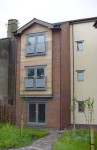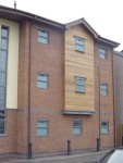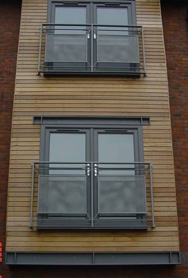 Timber frame construction with a variety of external materials used ie cedar board cladding, contrasting brickwork, exposed steelwork lintols and Juliet balconies and render.