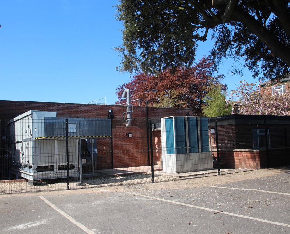 Externally Globe provided new windows and doors, new roof works where existing roof lanterns were removed, an external compound with a black security mesh fence and double door gate to contain service equipment.