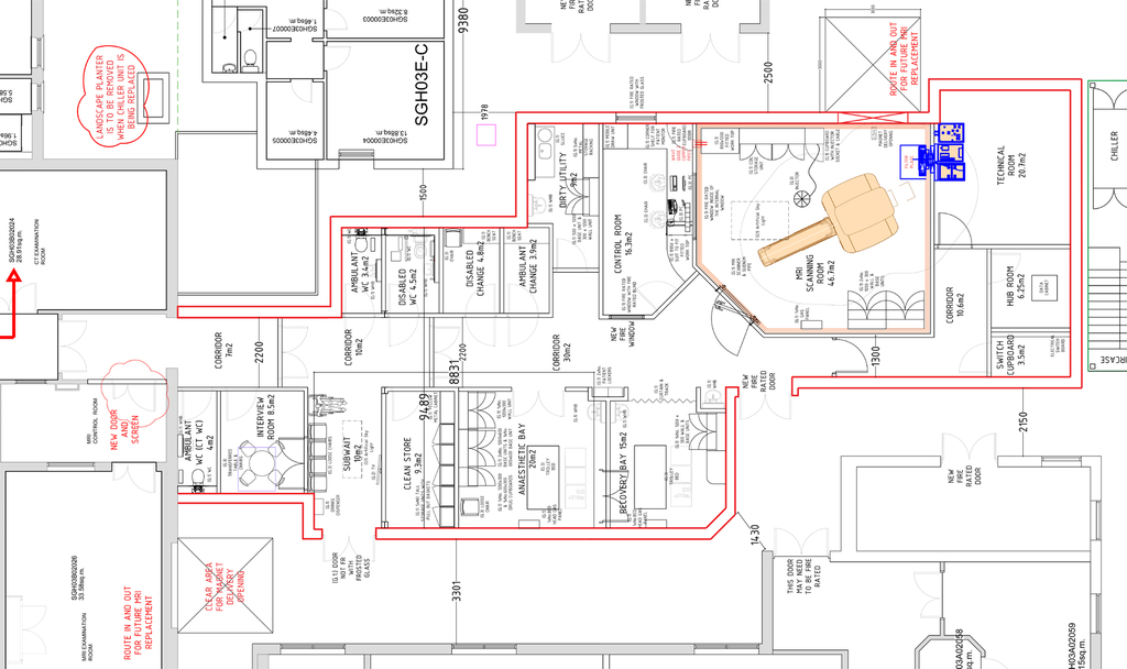 Globe was part of a client assembled design team asked to develop a feasibility study to introduce a new MRI suite to Scunthorpe General Hospital, which was to connect to the existing MRI suite. The design included: